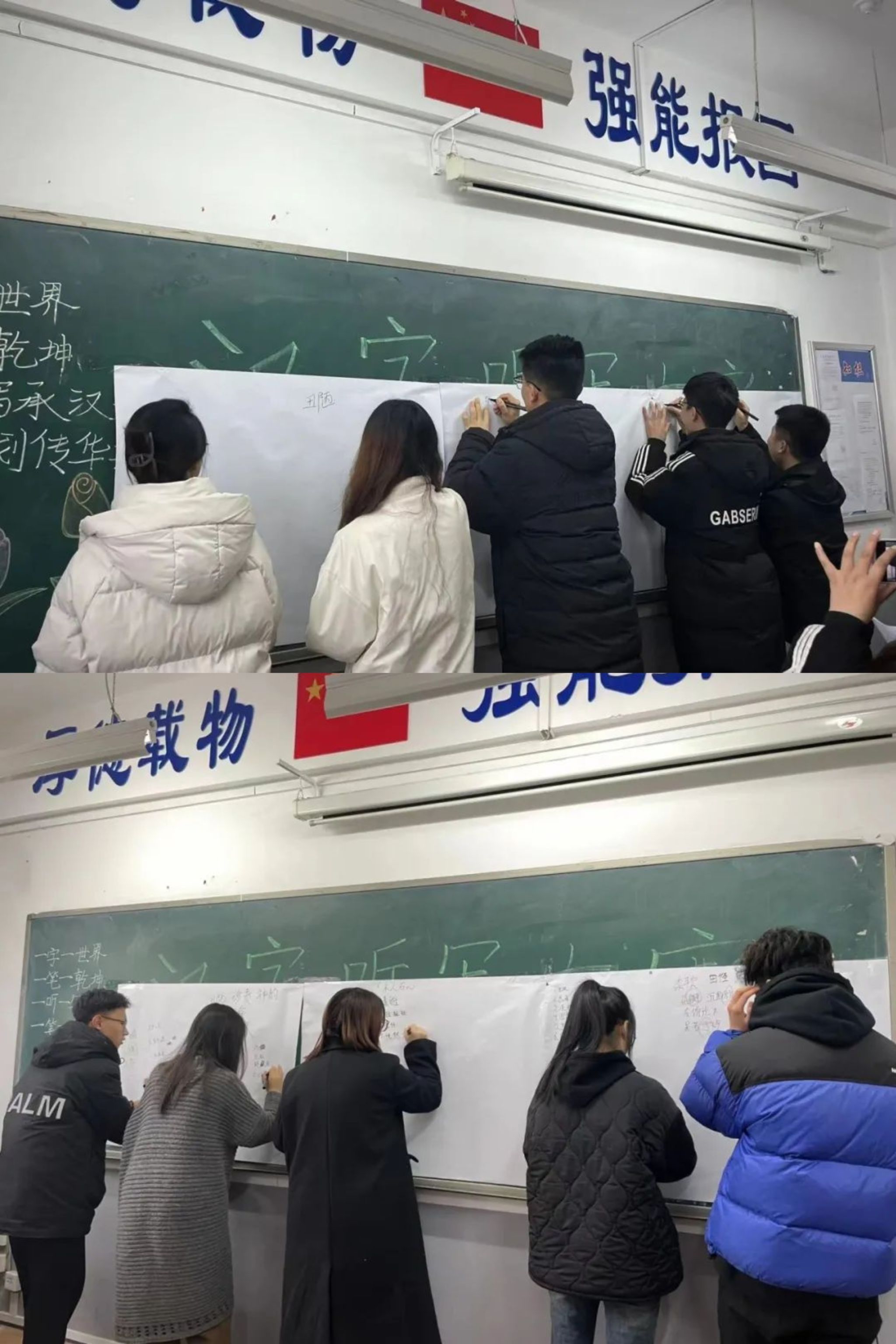 同学们绽放着他们特有的活泼与热情,认真聆听,规范书写。台下的同学也积极参与,有的托腮沉思,有的提笔书写,还有的翻阅字典,为一字而喜,也因一字而叹,台上激烈,台下热烈,全场学生都沉浸在汉字的世界里。