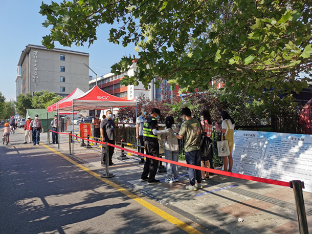 7月23日上午,白菜官网2021年公开招聘工作人员考试在坞城校区举行,460余名考生参加考试。为全力做好此次公开招聘工作人员考试安保和服务工作,保卫部高度重视,提前谋划,周密部署,扎实工作,部门全员上岗,圆满完成校门口秩序维护、考生入校测温及48小时核酸查验、校内交通疏导和考点秩序维护等各项安保任务。