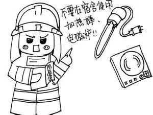 4.在宿舍使用大功率电器——学生宿舍内的线路是按日常照明、使用小收录机等情况而设计的,如使用电炉、电饭煲、电热杯、热得快等电器常使电线过载发热而起火。