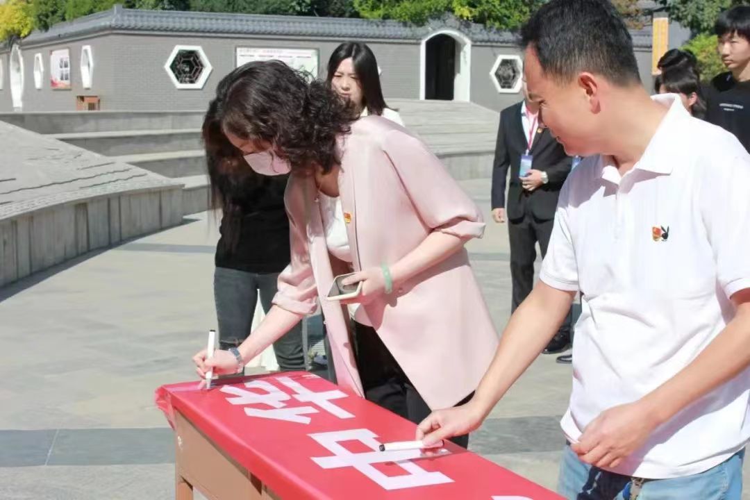 宣誓完毕后,师生郑重而庄严地在印有“勿忘国耻 铭记历史 居安思危 振兴中华”的横幅上签字,表达了全体师生对祖国、对和平无比热爱的拳拳赤子之心。