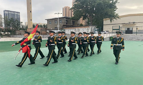 在指导员贺浩轩的指挥下国旗班张志、王世吉和张晨星同学护送着国旗迈着慷锵有力的步伐,自信专注地走向升旗台。国歌奏响,鲜艳的五星红旗冉冉升起,迎风飘扬,爱国爱校的激情和自豪感在大家心中荡漾。