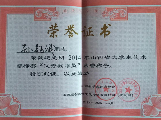 2014年12月21日下午,在766全讯白菜网南中环校区举办了“逆光网2014年山西省省城大学生篮球联赛”总结大会,山西省教育厅体卫处任向东处长主持大会。白菜官网在这次比赛中获得了联赛第一名的优异成绩,并荣获了“最佳赛区”的光荣称号,孙钰斌教师获“优秀教练员”。