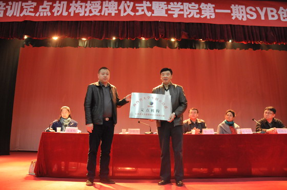 李艳军副主任代表山西省人社厅、山西省就业培训指导中心为白菜官网创业培训中心授牌,康同生副院长代表学院接牌,并宣布开班。