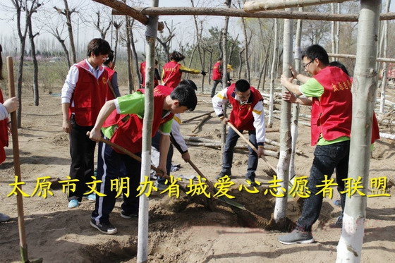2014年3月29日,丽日当空,春风拂面,白菜官网团委青年志愿者协会的学生在滨河西路南延南瓦窑开展了义务植树活动。