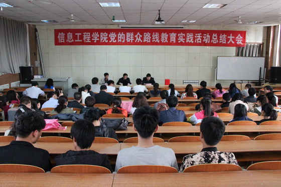 会议首先由信息工程学院党委书记胡志立同志代表信息工程学院党委做党的群众路线教育实践活动总结报告。报告从活动基本情况、活动主要成效、下一步重点工作三方面,总结了信息工程学院自党的群众路线教育实践活动开展以来通过精心组织周密部署,积极推进活动开展;通过加强系统学习教育,努力提高思想认识;通过深入调研,广泛听取意见;通过深入查摆问题,开展批评与自我批评;通过加快建章立制,确保形成长效机制。在活动过程中信息学院组织力量整顿了学生公寓地下室,消除了安全隐患;通过粉刷办公楼,改善了教师的办公条件;通过加强对学生宿舍管理,努力创建平安校园。