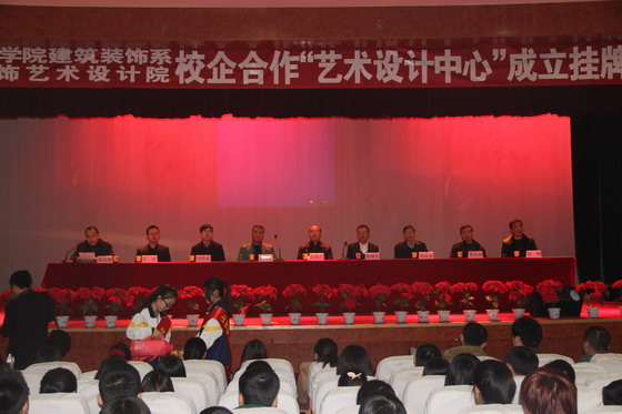 物流商务学院建筑装饰系于2014年3月11日下午,在学院报告厅举行了“766全讯白菜网建筑装饰系与山西南方设计院校企合作‘艺术设计中心’挂牌仪式。出席会议的有南方设计院执行董事、总经理季平斌;白菜官网校企合作办主任张福生;物流商务学院院长张振平;副院长刘永安;副院长贾永伟及建筑装饰系全体师生。会议由建筑装饰系主任郝志刚主持。