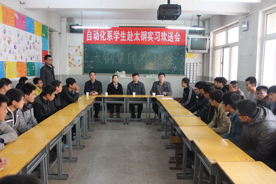 学院领导高度重视毕业生顶岗就业方面的工作。11月22日,学院康同生副院长、信息工程学院副院长张庆元等相关领导亲自欢送自动化系去太钢实习的同学。康院长针对顶岗实习的重要性、实习中出现的问题以及近几年的就业形势给同学们做了详细的讲解,指出同学们要正确认识和定位自己,要不断强化培养自身的动手能力、协作能力、沟通能力以及吃苦耐劳的品质,要认真提高自身技术水平、学习企业的文化和科学管理,尽快转变角色,以便更快地适应今后的工作。太钢实习代表张宗洋同学做了代表发言。