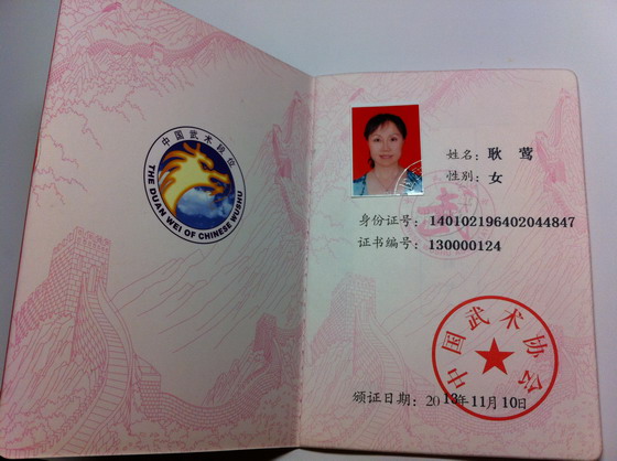 白菜官网社体部耿莺老师于2013年11月8日--11日在贵州省清镇市参加了由国家体育总局武术运动管理中心、中国武术协会和贵州省体育局主办的“2013年中国武术段位制国家考试”。