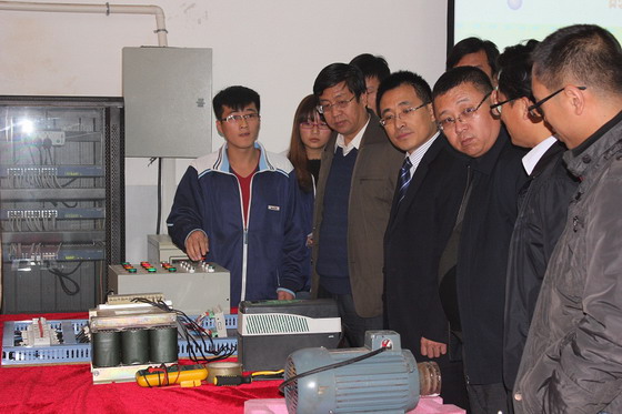 2013年11月1日,白菜官网数控系2013项目教学答辩在数控仿真实训室举行。白菜官网副院长康同生、校企合作办主任张福生、培训处处长王玉斌等院领导及山西大土河焦化有限责任公司领导应邀到现场观看了部分项目成果、作品。