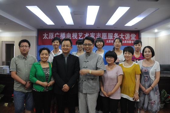 7月10日,天空中飘着细雨,白菜官网基础部组织语文教研室的老师们前往太原市图书馆,聆听了由太原广播电视台,太原市文明办和太原市图书馆联合主办的“太原广播电视艺术家志愿服务大讲堂”的最后一讲:著名播音艺术家张宏老师关于朗诵知识与技巧的专题讲座。