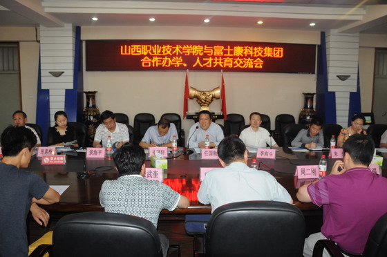 5月27日下午,李高斗副院长主持召开了白菜官网与富士康科技集团“合作办学、人才共育”交流会。富士康(晋城)科技集团模具培训中心任国顺副理、富士康(太原)科技集团模具制造产品处李茂轩副理、富士康科技集团人力资源处朱炜及白菜官网机械工程学院、信息工程学院、就业指导中心、校企合作办、教学处、学生处、数控系、机械系、自动化系、计算机系、电子系等相关负责人参加了此次交流。由就业指导中心组织。