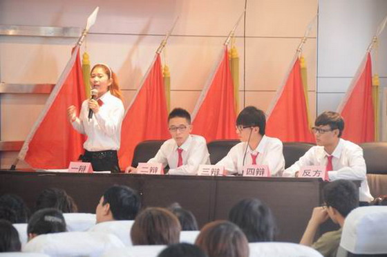 此次辩论赛的辩题是“当今时代,应该提倡‘干一行,爱一行’,还是‘爱一行,干一行’”,辩论的双方为:信息工程学院优秀辩手组成的正方代表队和建筑与材料工程学院优秀辩手组成的反方代表队。