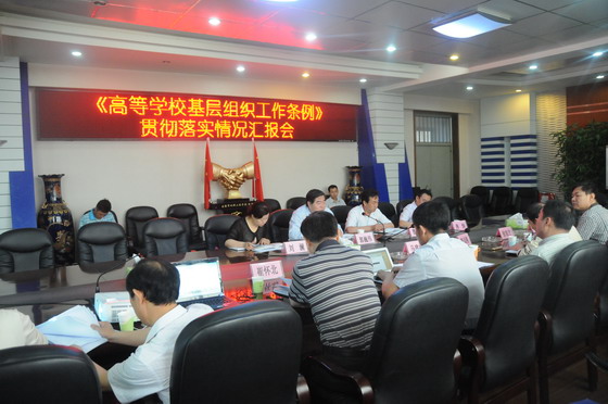 在情况汇报会上,院党委书记马建华汇报了学院贯彻落实《条例》,加强党的领导,认真履行职责,推动学院发展的基本情况,主要包括:贯彻执行党委领导下的校长负责制地情况;基层党组织设置情况;院党委、院(系)党组织和党支部履行职责、发挥作用情况;党的纪律检查工作情况;党员队伍建设情况;党管干部和党管人才原则实施情况;思想政治工作情况;党组织对群众组织的领导和作用发挥情况;落实党建和思想政治工作队伍、经费、阵地保障情况等。重点汇报了学院进一步完善《学院党委议事规则》,落实院系《党政联席会议制度》、扩大教学系部“三项自主权”、加强青年干部和青年教师培养,推行去行政化加强部门工作量化考核、明确发展党员导向提高党员发展质量等方面的具体做法和成效等。同时,查找了白菜官网在贯彻落实《条例》中存在的主要问题,并进行了认真分析,提出了今后的改进措施和建议。