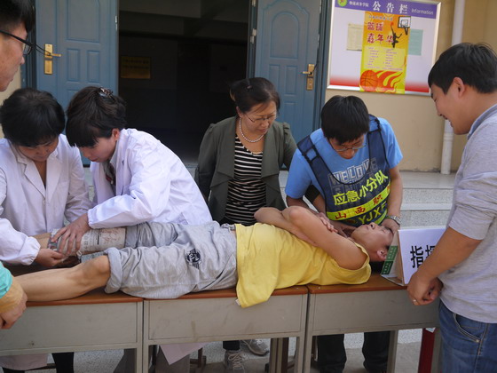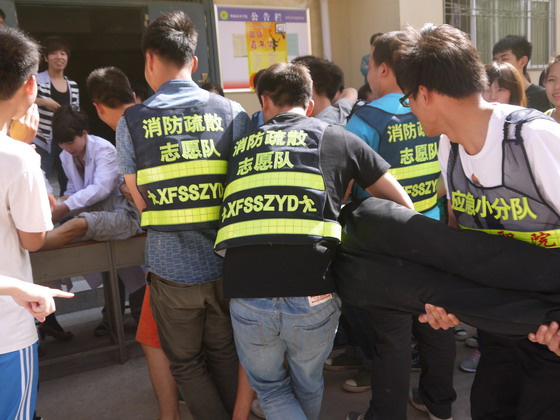 本次应急疏散演练活动由演前动员、防灾减灾知识宣传、防震应急疏散演练、消防应急疏散演练、遇险救助、消防器材使用演示、应急知识问答与互动、心理咨询等八个环节组成。应急疏散演练活动模拟本地发生6-7级地震和小型火灾情景。模拟险情发生后,指挥部立刻发出遇险警报,图书馆工作人员迅速启动应急预案,组织读者按照预案程序进行避震疏散,并将读者迅速撤离到安全区域。应急分队成员迅速到达现场搜救遇险人员,将其转移至救护站后,医务人员对其采取包扎、人工呼吸等紧急救护措施。整个活动安全、有序、有效。