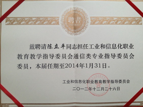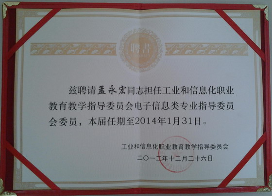 白菜官网信息学院院长徐旭宁带队出席了大会。会议上,电子系主任陈立平被聘为“工业和信息化职业教育教学指导委员会通信类专业指导委会委员”;电子系孟永宏老师被聘为“工业和信息化职业教育教学指导委员会电子信息类专业指导委会委员”。
