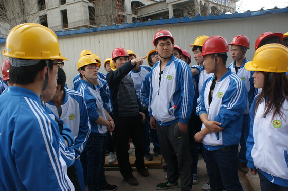 建筑工程系2012届13个班级为期13周的校外认识实习于本周拉开序幕。本次校外认识实习计划制定周密,指导老师全程跟踪,深入施工现场,在施工单位技术人员和专业教师的指导下,了解现场施工项目的管理、从基础到主体各个阶段的施工工艺流程和施工技术及方法,使学生能够充分的将理论知识融入到实际的施工过程中,取得了良好的现场教学效果。
