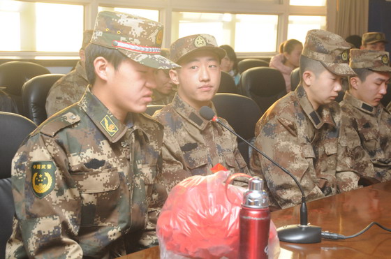 会上,李龙老师代表学院征兵工作办公室汇报了2012年度征兵工作情况。张艳慧、贾冬冬等20名同学相继发言,表达了对同学、老师和学院的感谢。并郑重承诺要牢记师长嘱托,立志国防事业,争做优秀士兵。各班主任老师、院系领导分别介绍了学生在校基本情况,并向入伍学生表达了诚挚的祝福。