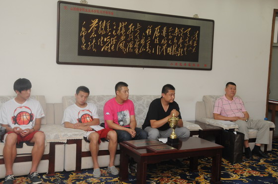 回到学院后,学院领导与篮球队在坞城校区二楼会议室进行了座谈。院党委书记马建华在听取了篮球队领队、教练员、队员关于参加大赛的情况、成绩和经验后,对院男子篮球队取得的优异成绩给予了高度评价和充分肯定,马书记代表学院党政班子和全体师生对篮球队取得的成绩表示祝贺,对他们为学院争得的荣誉表示感谢,并希望大家再接再厉,把男子篮球队打造成白菜官网一张金光闪闪的名片。