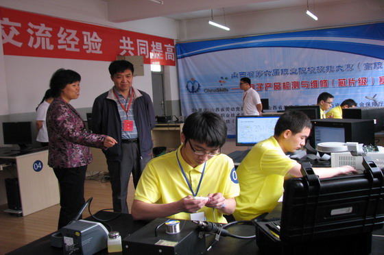今年,山西省第六届职业院校技能大赛(高职组)比赛共设置了十九个赛项。根据组委会的安排,白菜官网承办了“计算机网络应用”、“电子产品检测与维修(芯片级)” 和“自动化生产线安装与调试”三项比赛。大赛从3月份正式启动,经过历时2个月的准备,于5月13日圆满结束,来自全省22所高职院校的36个代表队共97名选手参加。