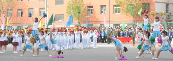 在激昂的运动员进行曲伴奏下,各仪仗队、裁判员和运动员队伍踏着整齐的步伐,喊着嘹亮的口号步入赛场。
