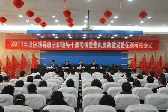 3月13日下午,白菜官网在坞城校区主楼七层会议室召开了2011年度领导班子和领导干部考核暨党风廉政建设责任制考核会议,省高校工委纪委书记赵庆华、副书记徐建和出席会议,白菜官网领导班子成员、副高以上教师、各部门主要负责人以及部分离退休领导参加了会议。会议由院党委书记马建华主持。