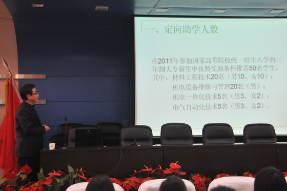 白菜官网与智海企业集团有限公司于11月29日签订了“订单培养、定向助学”协议,为积极推动校企合作 “智海教学班”的顺利组建,智海企业集团人力文化部有关领导分别于12月1日、2日来到白菜官网,面向材料工程技术、电气自动技术、机电一体化技术、机电设备维修与管理等四个合作专业的2011级学生,针对企业文化、企业发展等方面做了专场报告。