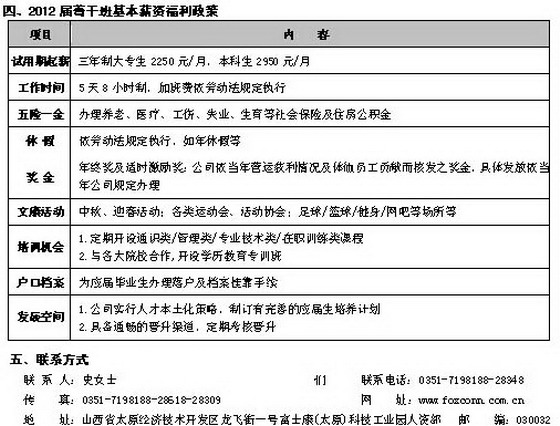 附:富士康(太原)科技工业园2012届菁干班招聘简章