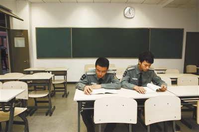“在北大当保安,学习是第二职业。”每年给保安队新人讲第一课时,队长王桂明都强调北大保安队的学习特色。王桂明说,目前北大保安大队有近500人。其中30余人已拿到大专以上文凭,30余人正在北大、人大等高校以自考、成教形式进修。“还有的保安不求文凭,但也爱学习,占1/3。”王桂明说。在清华大学,保安获文凭率与北大持平。清华大学保安队长鞠国升说,该校20余名保安在读大专以上课程。