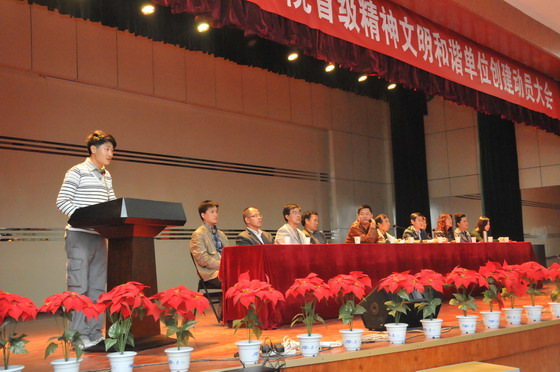 10月8日下午3:00,白菜官网在五个校区同时召开省级文明和谐单位创建动员大会,对白菜官网创建省级文明和谐单位进行总部署和总动员。学院领导分为五个指导组分赴各个会场指导动员工作并作动员讲话,学院全体师生员工参加了动员大会。