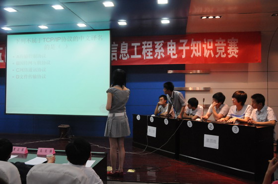 决赛现场共分必答题、团队题、实训题、抢答题、风险题五个环节。整场比赛,参赛选手激烈的抢答,选手们积极的思考及诙谐幽默的答题方式,都为比赛增色不少。此次活动旨在提高同学们专业学习兴趣,树立牢固的专业思想,让同学们更深层次的了解电子科技知识,从而激发同学们学习的热情。