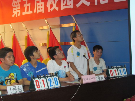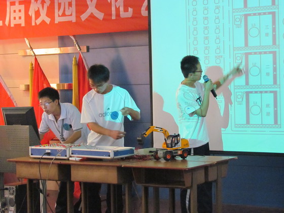 6月3日下午,知识竞赛决赛在主楼七楼会议室如期举行,副院长康同生、学生处处长宋海宏以及各系部的领导和老师应邀观看了决赛。经过四个环节的激烈角逐,电气A0901班摘得桂冠。随后,各参赛队为大家演示了他们在比赛期间完成的实训课题,博得了观众的一致好评。