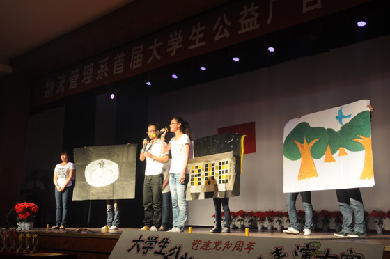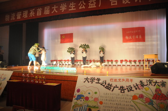 2011年6月7日晚,物流管理系首届“星光杯”迎建党90周年大学生公益广告设计表演大赛决赛在长风校区礼堂隆重开幕,学院副院长康同生,宣传部部长郭学忠,学生处处长、团委书记宋海宏,团委副书记李星及各系部领导老师亲临比赛现场观看比赛,该系相关专业老师担任本次比赛的评委。
