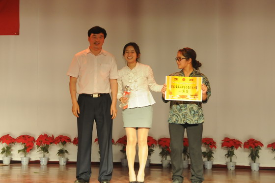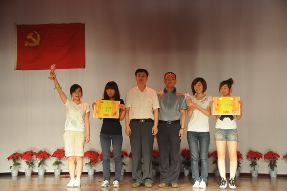 宣传部部长郭学忠,学生处处长、团委书记宋海宏为获得二等奖的选手代表颁奖