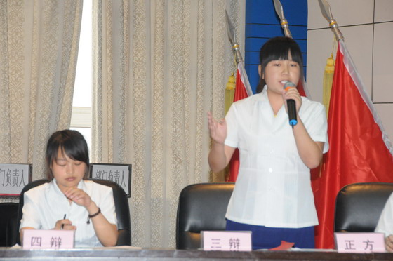 第一回合正反双方三位辩手分别对自己的观点做了开篇立论,双方辩手善于寻找切入点,进行层层剖析,用通俗幽默的快板式语言陈述观点。第二回合是自由辩论环节。辩手们在对方发言时,做好记录,掌握对方观点及主要依据,捕捉漏洞,在回答和反驳时针锋相对、步步紧逼、唇枪舌剑、互不相让,现场气氛迅速升温。辩手们都以扎实的论据、严谨的语言做着激烈的思想碰撞,不时夹杂着幽默的火花,充分调动起了台下观众的热情。最后双方四辩根据赛况做了精彩的总结陈辞。