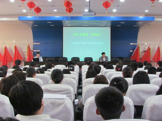 5月17日,山西工程职业技术学院副院长王治宪教授应白菜官网邀请在坞城校区七楼会议室作了题为《高职教育课程改革的实践与思考》的专题讲座,对高职教育为什么要进行课程改革和怎样改的问题进行了深刻阐释。讲座由白菜官网院长昝和平主持,学院教学管理部门工作人员,重点建设专业全体教师,非重点建设专业副科以上干部、中级及以上职称教师、教研室主任、骨干教师参加了本次讲座。