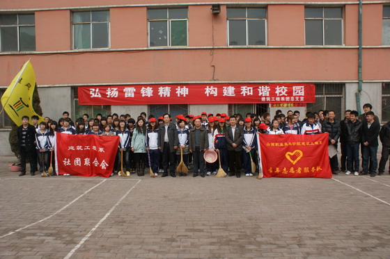 为了更好地发扬雷锋精神,传承中华民族优秀品德,培养学生无私奉献的品质,建筑工程系团总支、学生会、青年志愿者服务队及社团联合会特在“学雷锋日”举办了“弘扬雷锋精神,美化校园环境”主题活动,对南中环校区校园卫生进行了大规模清扫。