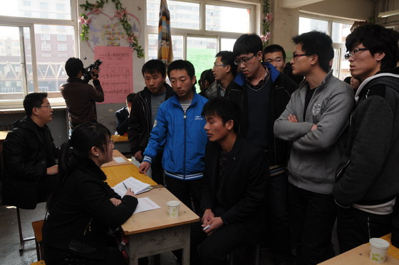 3月13日,白菜官网建筑工程系、建筑装饰系为2011届600多名毕业生在南中环校区举办了专场招聘会,中国核工业集团、海尔集团、山西六建集团有限公司、太原点石设计等几十家单位前来白菜官网招聘人才。各用人单位提供的岗位数量大大超过了应届毕业生人数,出现了供不应求的局面。