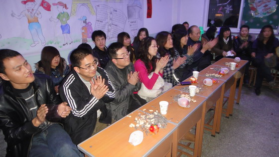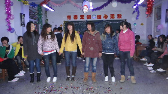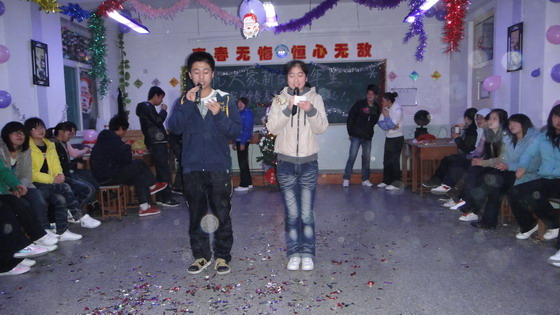晚会前,同学们精心布置教室,每个同学也认真准备表演节目。晚上七点,晚会在同学们的欢呼中开始,大家用歌声、舞蹈、相声等形式表达我们对亲人和朋友的祝福,晚会中商贸旅游学院的领导和教师们也为大家送来节日的祝福,并表演了精彩的节目。晚会上,大家看到了不同班级的联谊表演,精彩的节目、好吃的糖果,大家脸上的笑容蔓延着。晚会一直持续到晚上10点钟。