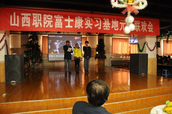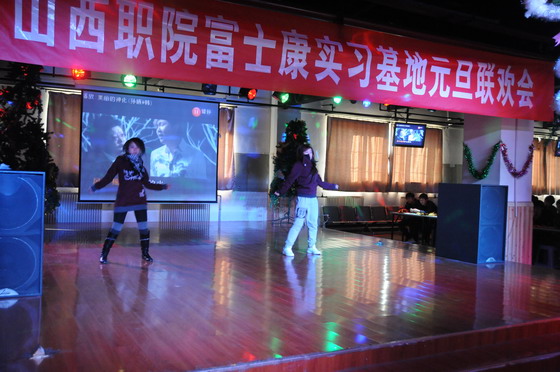 联欢会上,富士康顶岗实习师生展示了他们在业余时间排练的精彩节目,应邀出席联谊会的领导们也在师生的盛情邀请下一展歌喉,为大家献上了新年祝福。