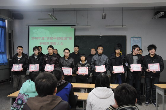 近日,白菜官网保卫科在坞城校区主楼召开了2010年度创建平安校园暨护校队表彰大会,大会总结了学院一年来创建平安校园工作,并为护校队中30余名先进队员进行了表彰。