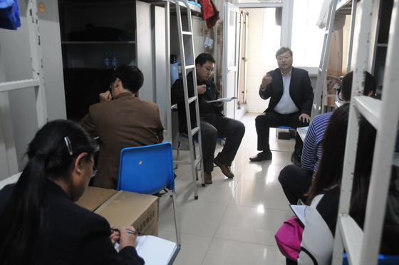 为了与富士康配合一起协助同学们完成这次顶岗实习任务,白菜官网特派顶岗实习领导组副组长李军同志带领6名带队老师进驻富士康具体开展工作,并同时成立了顶岗实习指导管理工作组。为了进一步稳定学生们的思想和更好地开展工作,我们又以最快的速度建立了临时党支部、团支部及学生分会,这样我们就可以充分发挥学生党员、入党积极分子和学生干部的作用,架起师生信息桥梁,在自律和带头的同时,协助带队老师一起带领同学们完成实习。除了健全的组织机构外,我们还制定了带队老师管理办法、实习生日常管理制度、学生实习成绩考核制度、请销假制度等一系列章程,用严明的纪律和人性化的管理来要求学生,从而更好地保证实习的顺利进行。