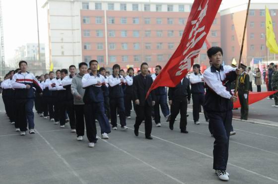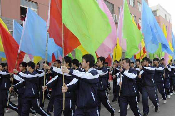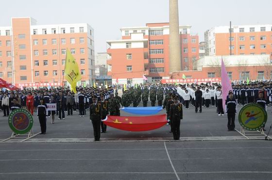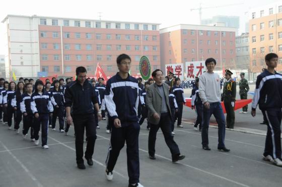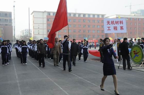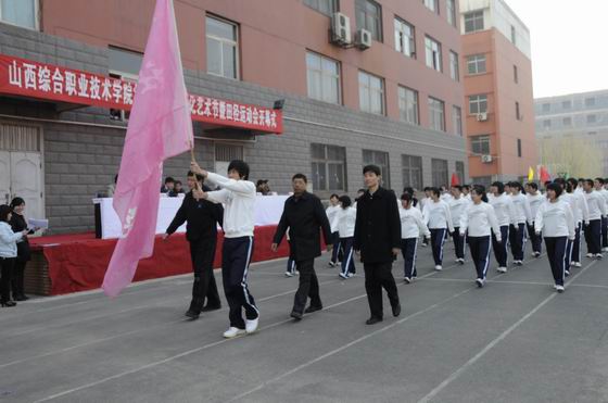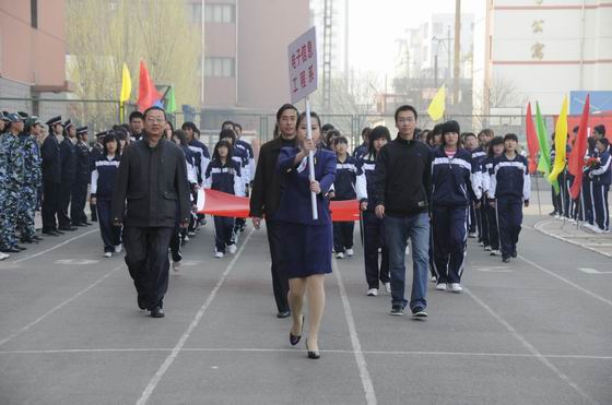 伴随着高亢激昂的运动员进行曲,国旗队、鲜花队、彩旗队以及八系一部代表队队员个个英姿飒爽,迈着矫健的步伐,喊着高昂的口号步入会场,气氛热烈而壮观。
