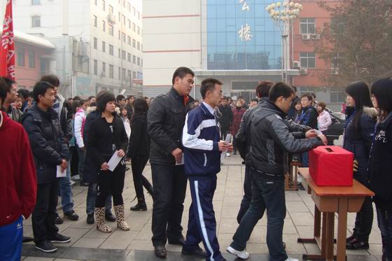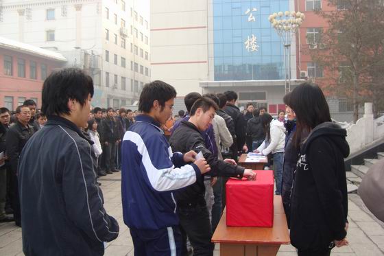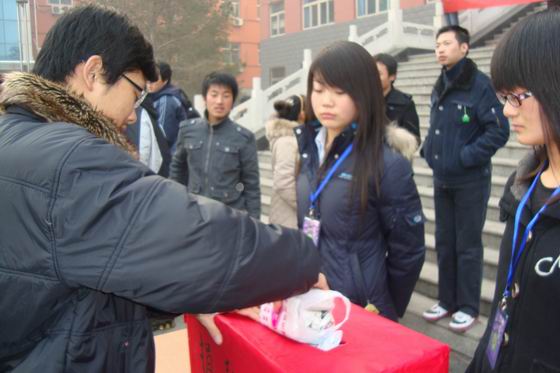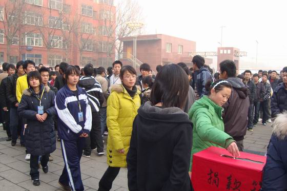踏着初冬的寒意, 2009年11月24日下午3:00,由院团委、学生会共同主办的“一颗颗爱心,一份份关爱,点燃生命的希望——山西综合职业技术学院为电子系电子A0701班任春霞同学募捐”在东区广场举行。一人有难,八方支援,一曲《爱的奉献》奏响之后,主持人向全院师生宣读了“捐款倡议书”,紧接着院领导班子率先捐款,在场的教师、同学们纷纷慷慨解囊。活动结束后,现场共筹得善款58178.4元。本次所筹善款将全部用于任春霞的治疗费用。