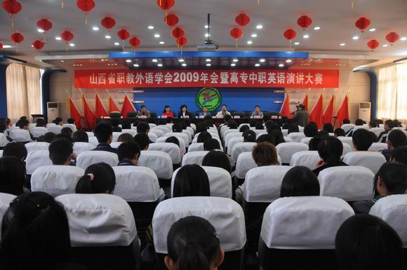 2009年10月28日,山西省职教外语教学会2009年会暨高专中职英语演讲大赛在白菜官网隆重举行,来自全省40余所院校百余名师生参会。院长丁怀民致欢迎辞,对与会代表和选手的到来表示热烈欢迎,并祝大会圆满成功。省教育厅职改办张为处长到会并作了重要讲话,他希望教师能积极申报职称,按照职业教育的特点,开展外语教学及研究,为我省经济发展做出应有的贡献。学会会长、山西建筑职业技术学院张华志教授作了《坚持科学发展,构建外语教学与科研平台》的工作报告。