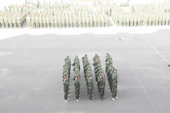 丁怀民院长在承训部队领导的陪同下检阅了东区方阵。在随后举行的阅兵仪式中,同学们展现出了良好的精神风貌。他们喊着响亮的口号,整齐划一地走过主席台。