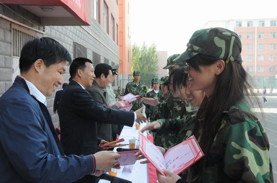 学院领导和承训部队领导为军训获奖的集体和个人颁奖