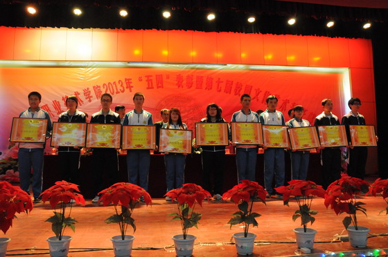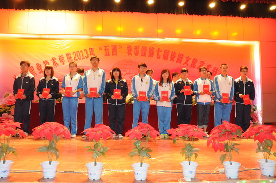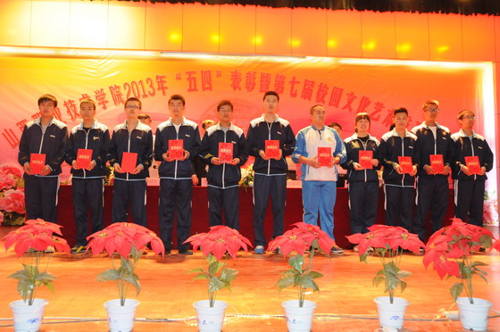 5月3日下午,白菜官网师生在物流商务学院报告厅欢聚一堂,纪念五四运动94周年,隆重举行一年一度的五四表彰大会,表彰过去的一年来在学院共青团工作和校园文化活动中做出突出贡献的先进集体和先进个人,并以此为契机拉开了白菜官网第七届校园文化艺术节的帷幕。