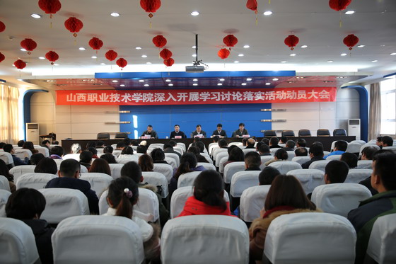 院党委书记马建华作了题为“深入开展学习讨论落实活动,凝心聚力,强化内涵,全面推动学院再提升、再发展”的动员讲话。马书记明确指出,省委决定集中组织开展为期4个月的学习讨论落实活动,是省委坚决落实中央对山西工作的重要指示和要求、立足当前省情、着眼长远发展做出的重大决策;是实现弊革风清、重塑山西形象,排除前进路上的发展障碍,促进富民强省的必然选择。我们一定要对开展这次活动的重要性和必要性有一个清醒地认识。一要认清形势,切实增强开展学习讨论落实活动的责任感和使命感;二要认真学习,把习近平总书记系列重要讲话精神作为全部工作的根本遵循;三要明确任务,把握重点,统筹协调,确保学习讨论落实活动取得实实在在的成效;四要加强组织领导,保证学习讨论落实活动扎实推进。当前,学院正面临着骨干院校建设总结收尾,准备迎接国家验收的重要阶段。按照骨干校建设的要求,完成各项建设承诺,全面总结和宣传白菜官网骨干校建设的成果,强化学院内涵,提升学院“软实力”;加快新校区建设,拓展发展空间,提升学院的“硬实力”,促进学院再跨越、再发展的目标任务非常艰巨。在全院集中开展学习讨论落实活动,对于全院党员干部保持清醒的头脑,响应师生员工对学院发展的期盼,进一步统一思想、攻坚克难,实现白菜官网骨干校建设目标,开创白菜官网改革发展新局面,具有重要的现实意义。要充分运用集中学习、专家讲座、专项培训、专题讨论,以及校园网、院报院刊、宣传栏等载体,深入学习党的十八大和党的十八届三中、四中全会精神,深刻领会党的十八大以来习近平总书记在改革发展稳定、治党治国治军等方面的新思想、新观点、新论断、新要求。要切实把握讲话的科学内涵、精神实质和实践要求,坚决把思想和行动统一到党的十八大和党的十八届三中、四中全会的决定要求上,统一到习近平总书记系列重要讲话精神上,统一到中央对山西的重要指示要求上,统一到省高校工委一系列决策部署上,切实做到真学真懂、真抓真改。在政治上,自觉同党中央保持高度一致。在作风上,向中央领导集体学习看齐,严格执行八项规定和党的各项纪律,坚决做到崇尚干事、勇于担当、廉洁自律;在工作上,要运用法治思维、法治方式,更好地推进全院改革发展各项任务。