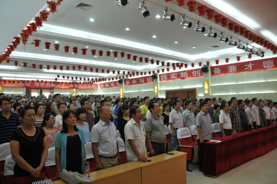 院党委书记马建华围绕“锁定一个目标”打造“两个实力”(即:紧紧围绕“打造三晋高职第一校”的奋斗目标,通过骨干院校建设,加强内涵建设,打造学院的“软实力”;通过新校区建设,扩大发展空间,打造学院的“硬实力”,不断提升学院的核心竞争力,全面实现学院的再跨越、再发展)做了重要讲话。马书记充分肯定了学院完善激励机制、狠抓内涵建设所取得的成绩,高度赞扬了对职业教育事业无限忠诚,对学院感情深厚,为学院发展做出贡献的一代代山职院教师。