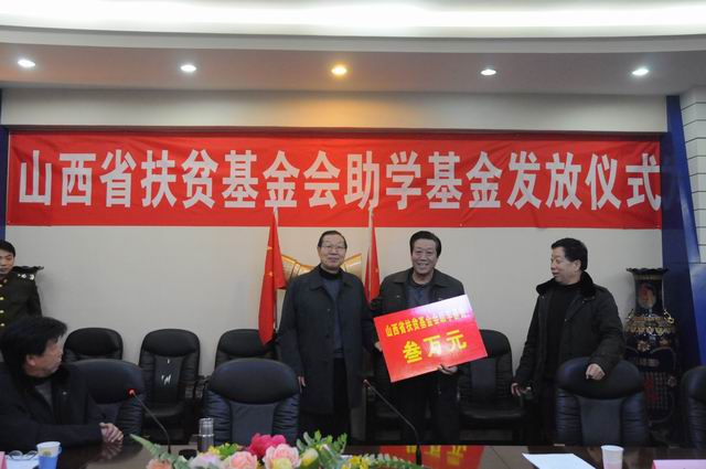 山西省扶贫基金会助学金基金由被誉为“当代潞商”的长治经坊集团董事长王山虎先生向山西扶贫基金会捐款设立,用于帮助在校特困大学生完成学业。该助学基金在我校设立于2009年9月,此次为首次发放。